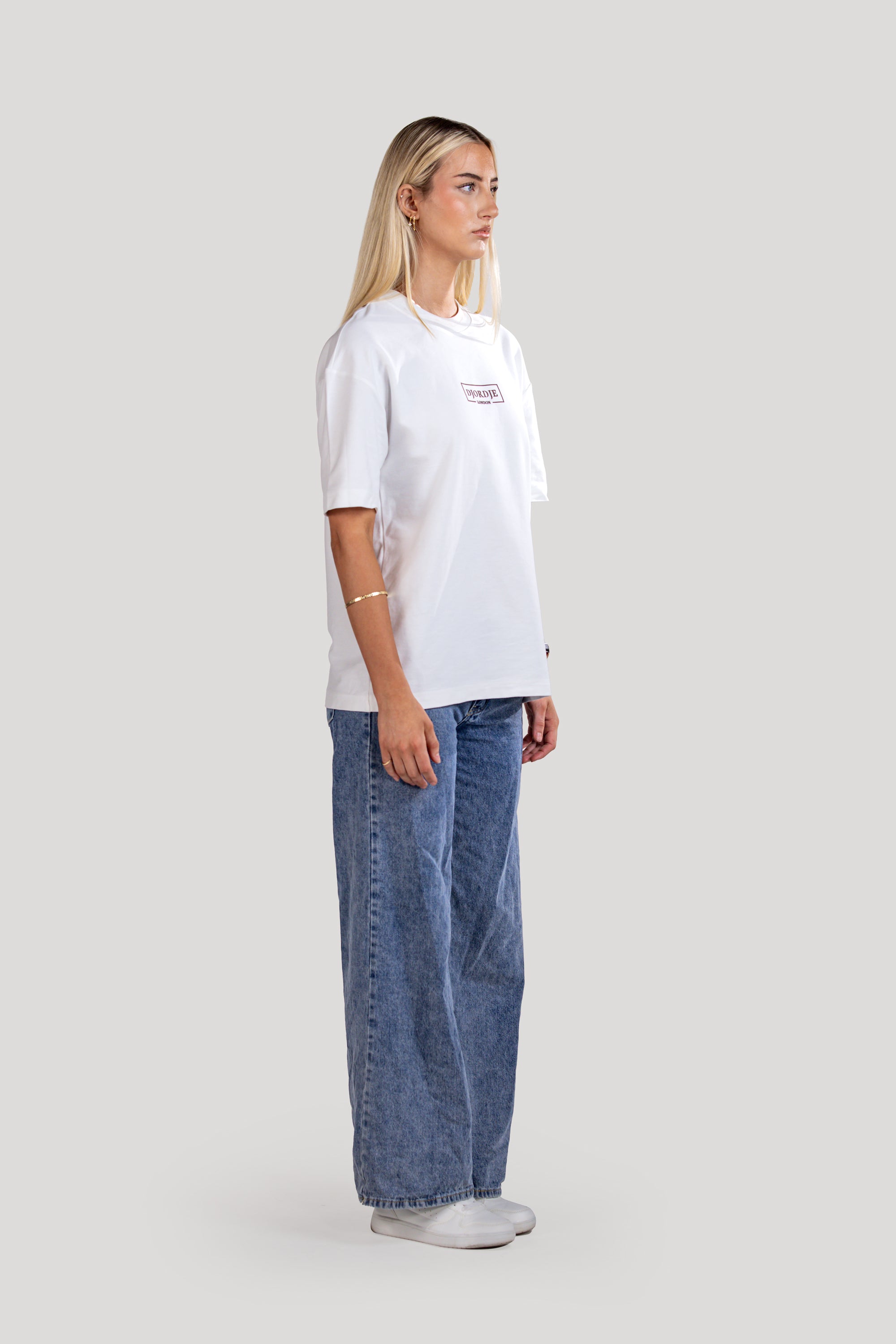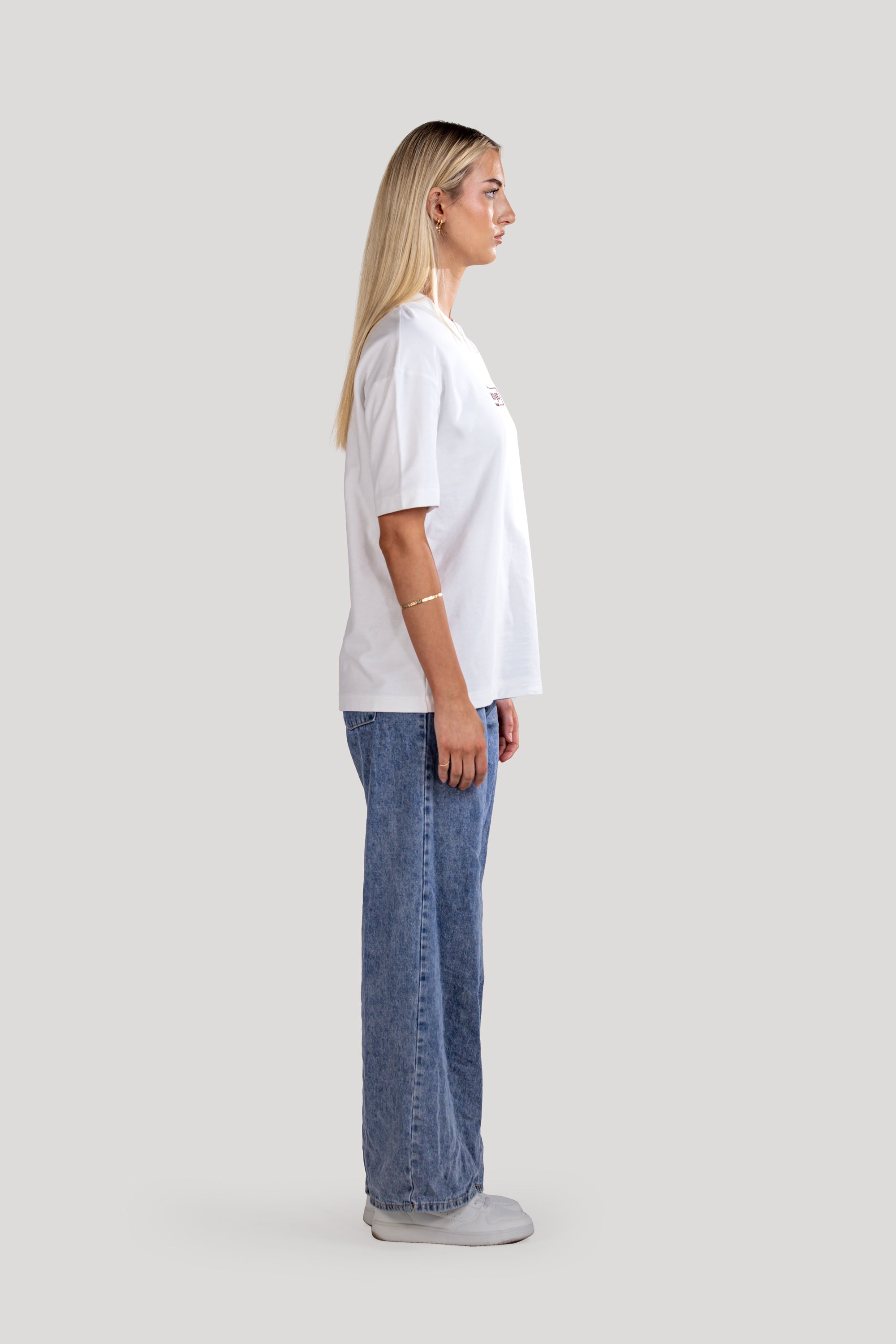Tailored cut with a semi-relaxed silhouette and refined details, sitting between a traditional and oversized t-shirt.