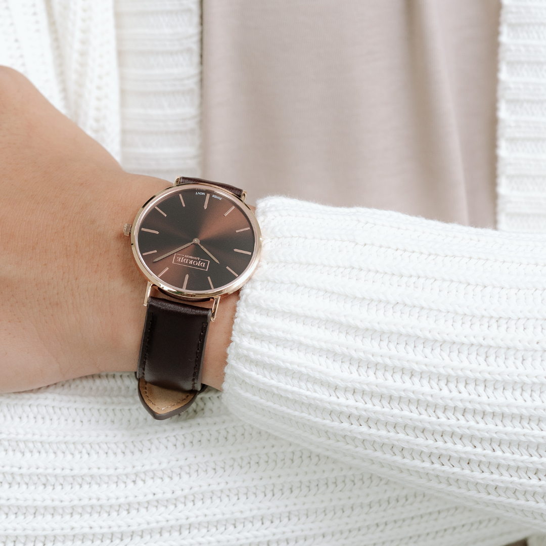 Featuring our exclusive sunray brown dial which subtly shifts hue in sunlight, giving it an exquisite satin finish, paired with our brown leather strap.
